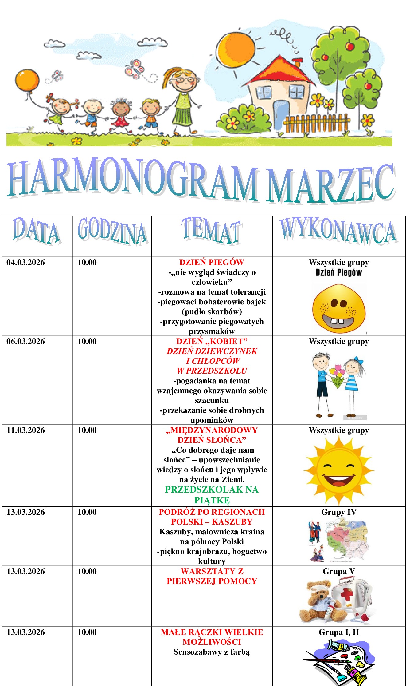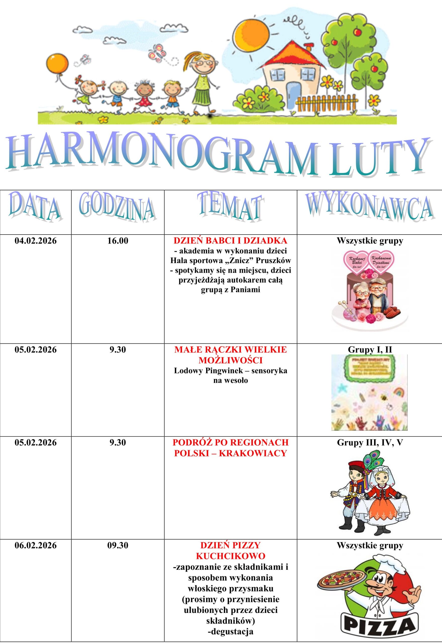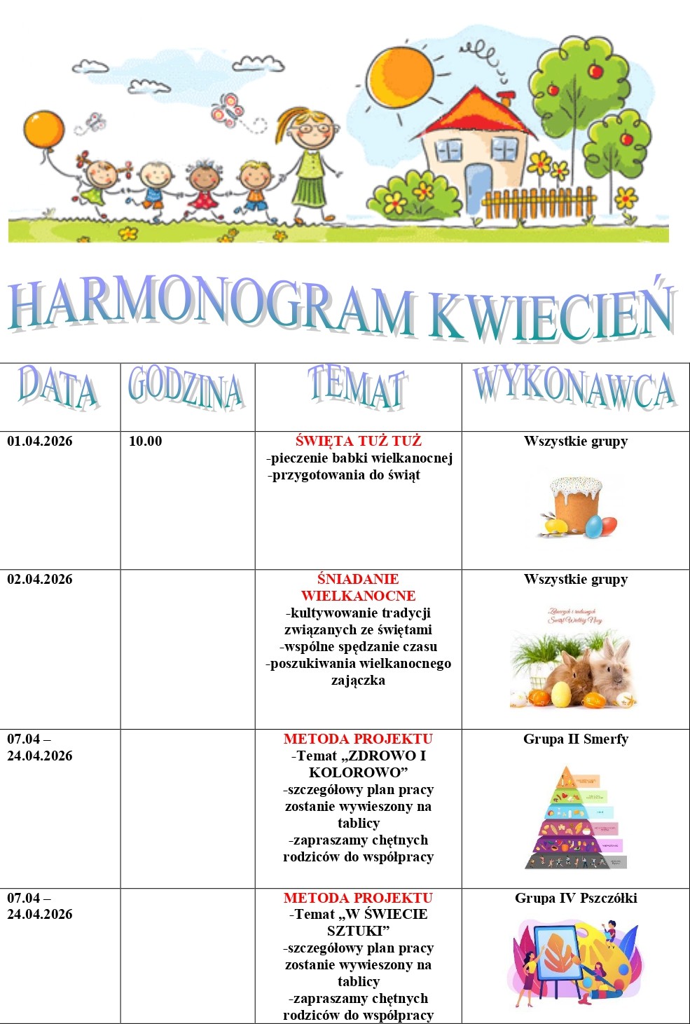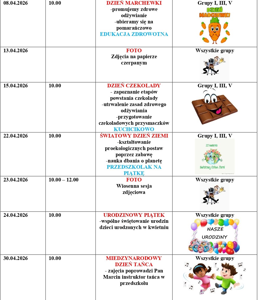 Wydarzenia Strona główna | Wydarzenia Kwiecień 2026 Marzec 2026 Luty 2026 Styczeń 2026 Grudzień 2025 Listopad 2025 Październik 2025 Wrzesień 2025 Metoda Projektu Wyjścia i wycieczki Konkurs plastyczny